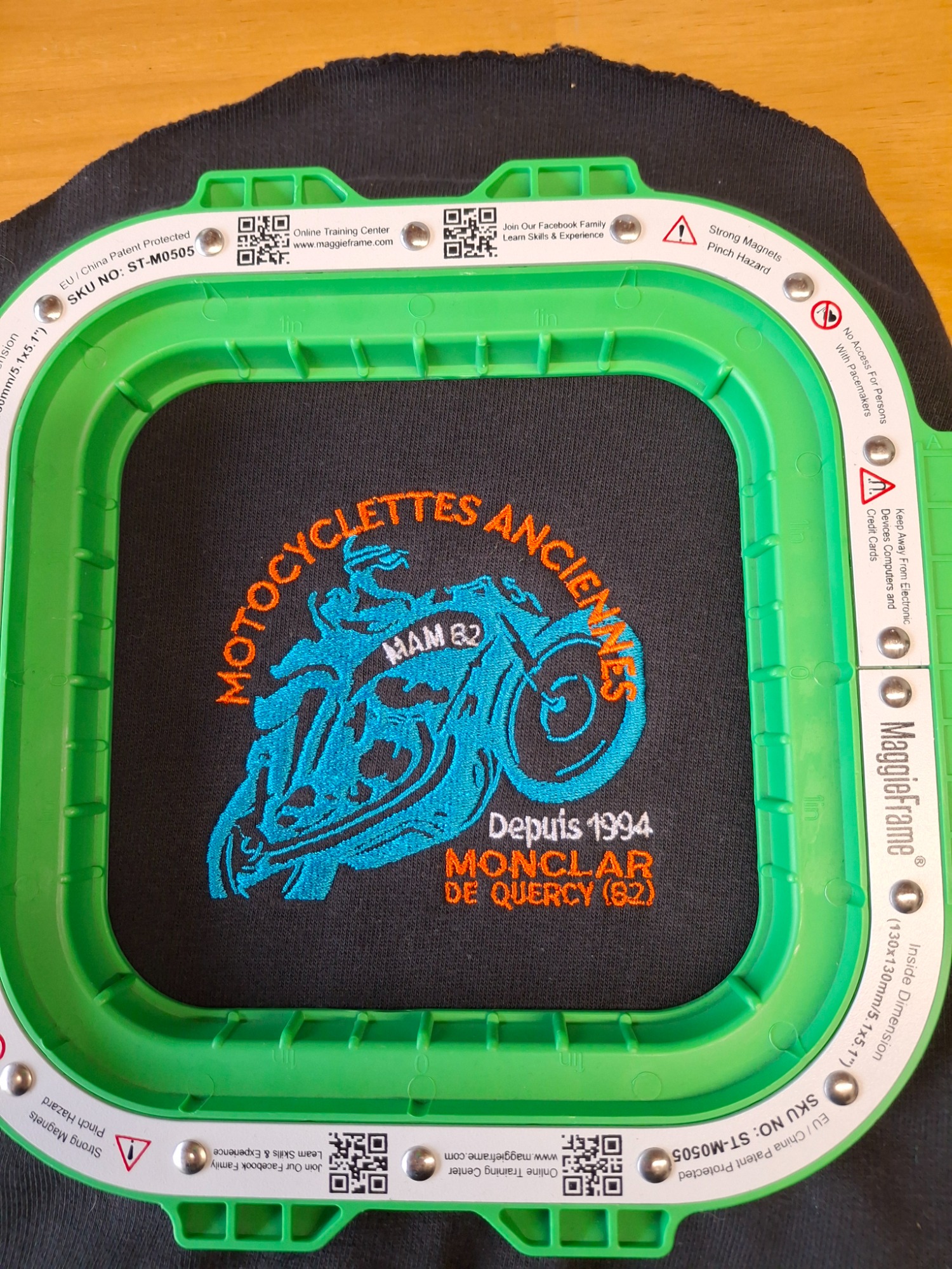 Broderie sur tee-shirt 100 % coton. Broderies sur le cœur et la manche gauche pour un évènement caritatif pour une entreprise Montalbanaise.