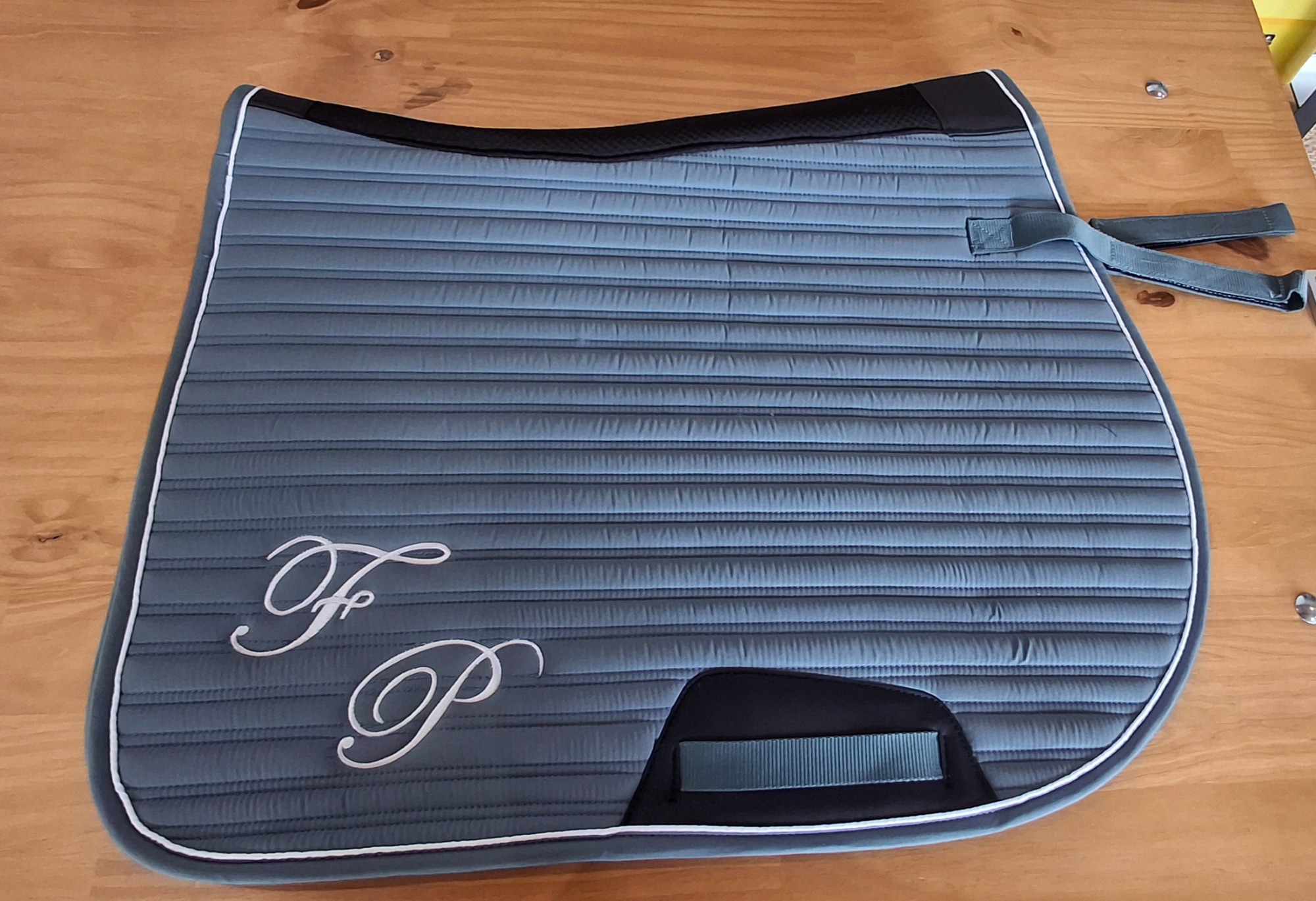 Broderie prénom sur tapis de cheval de 15 cm de long.
